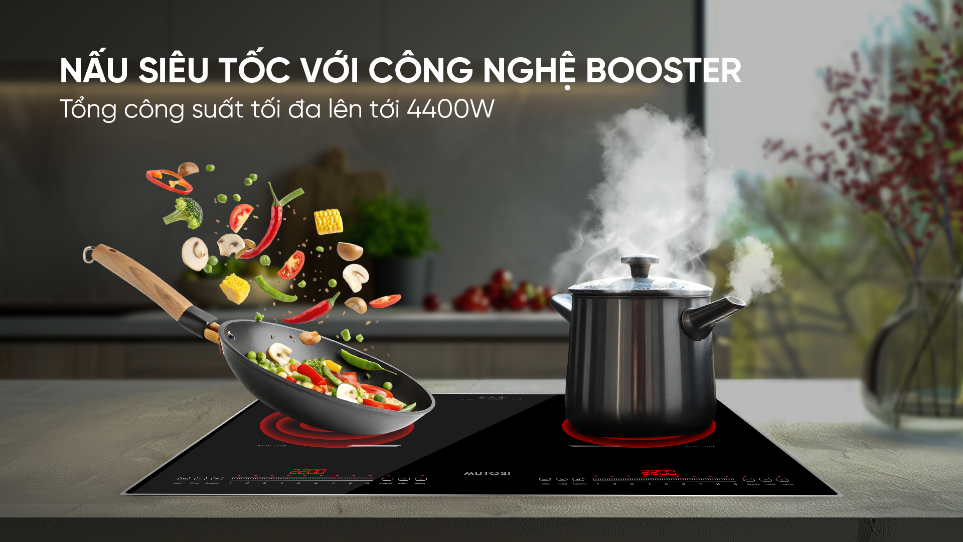 - Tổng công suất tối đa lên tới 4400W cùng chế độ Booster, tiết kiệm thời gian nấu