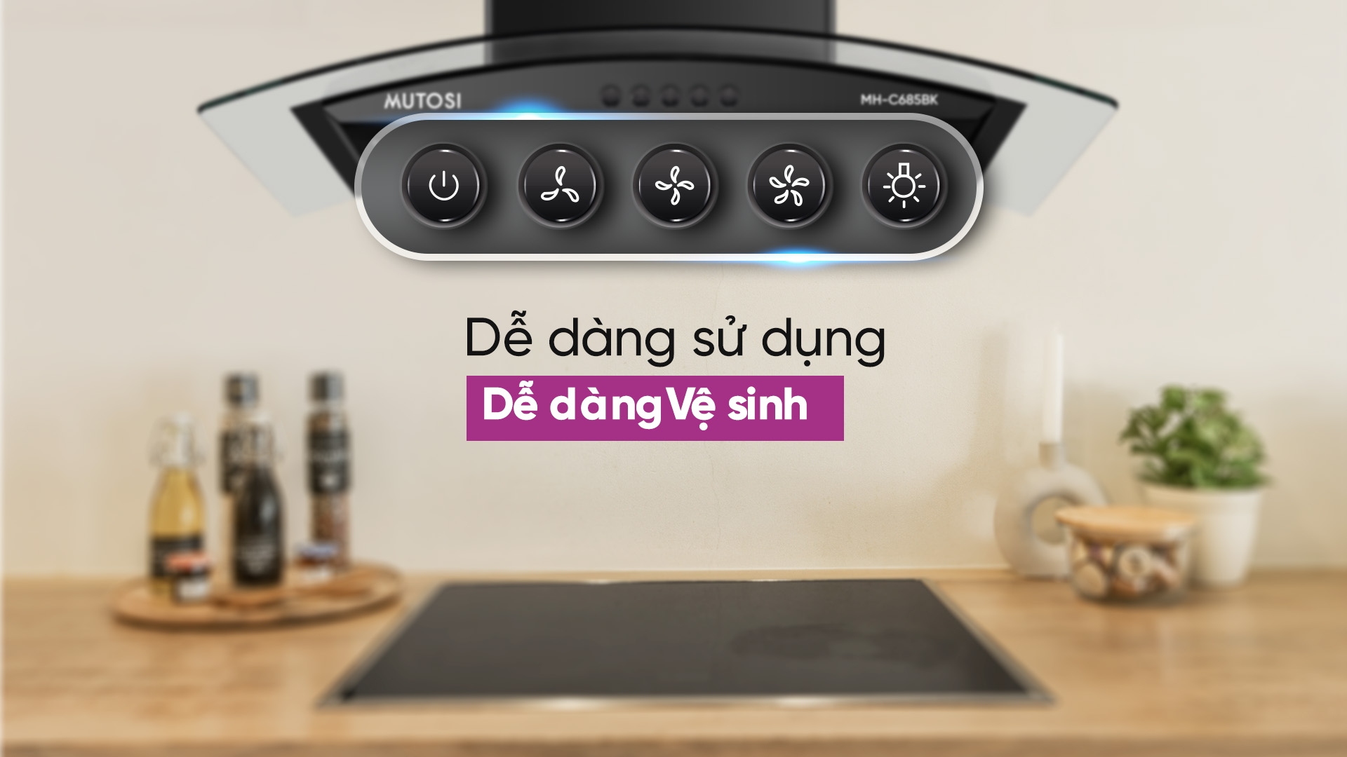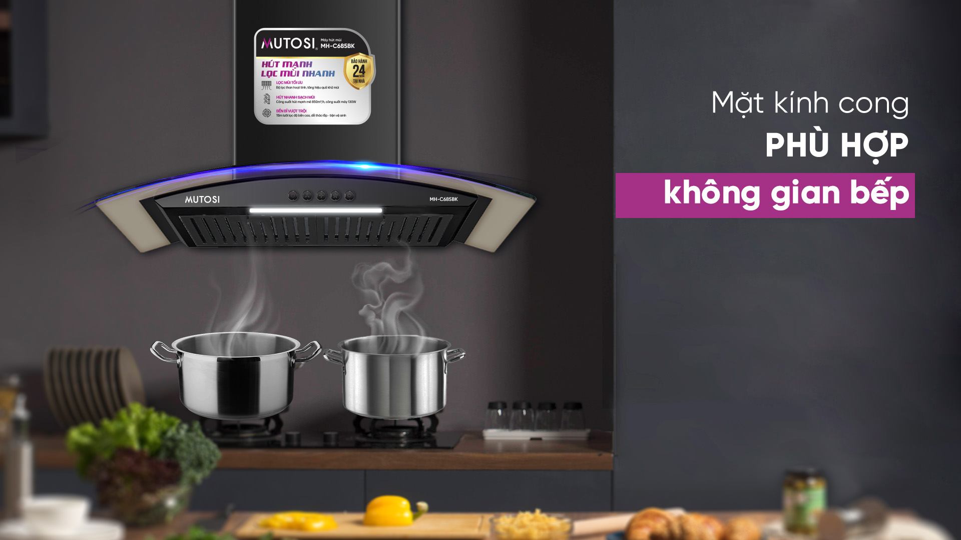 Nhận thấy nhu cầu có một cuộc sống chất lượng và mạnh khỏe hơn từ khách hàng, Mutosi đem đến cho bạn và gia đình model máy hút mùi kính cong Mutosi MH-C685BK. Với những ưu điểm như công suất hút lớn, độ ồn thấp, dễ dàng điều khiển và vệ sinh… máy hút mùi MH-C685BK mang đến không gian bếp luôn thoáng mát, trong lành.