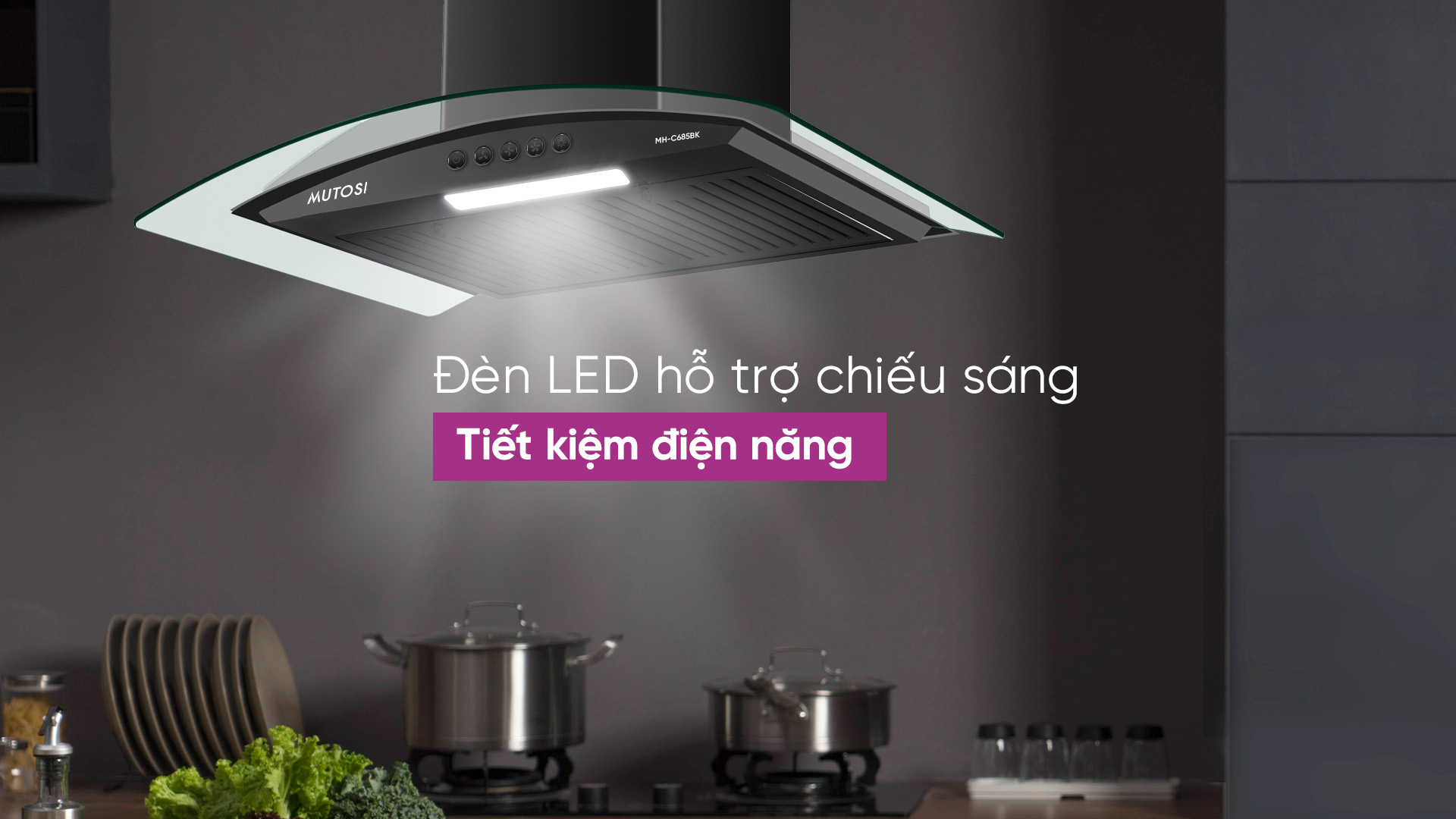 Máy hút mùi MH-C685BK trang bị bóng đèn LED, giúp chiếu sáng toàn bộ khu vực nấu nướng cho bạn nhìn rõ từng món đồ trong bếp để sử dụng và nấu ăn thuận tiện. Sử dụng đèn LED không chỉ tạo ánh sáng tốt, mà còn giúp tiết kiệm điện năng hơn so với những loại bóng đèn khác