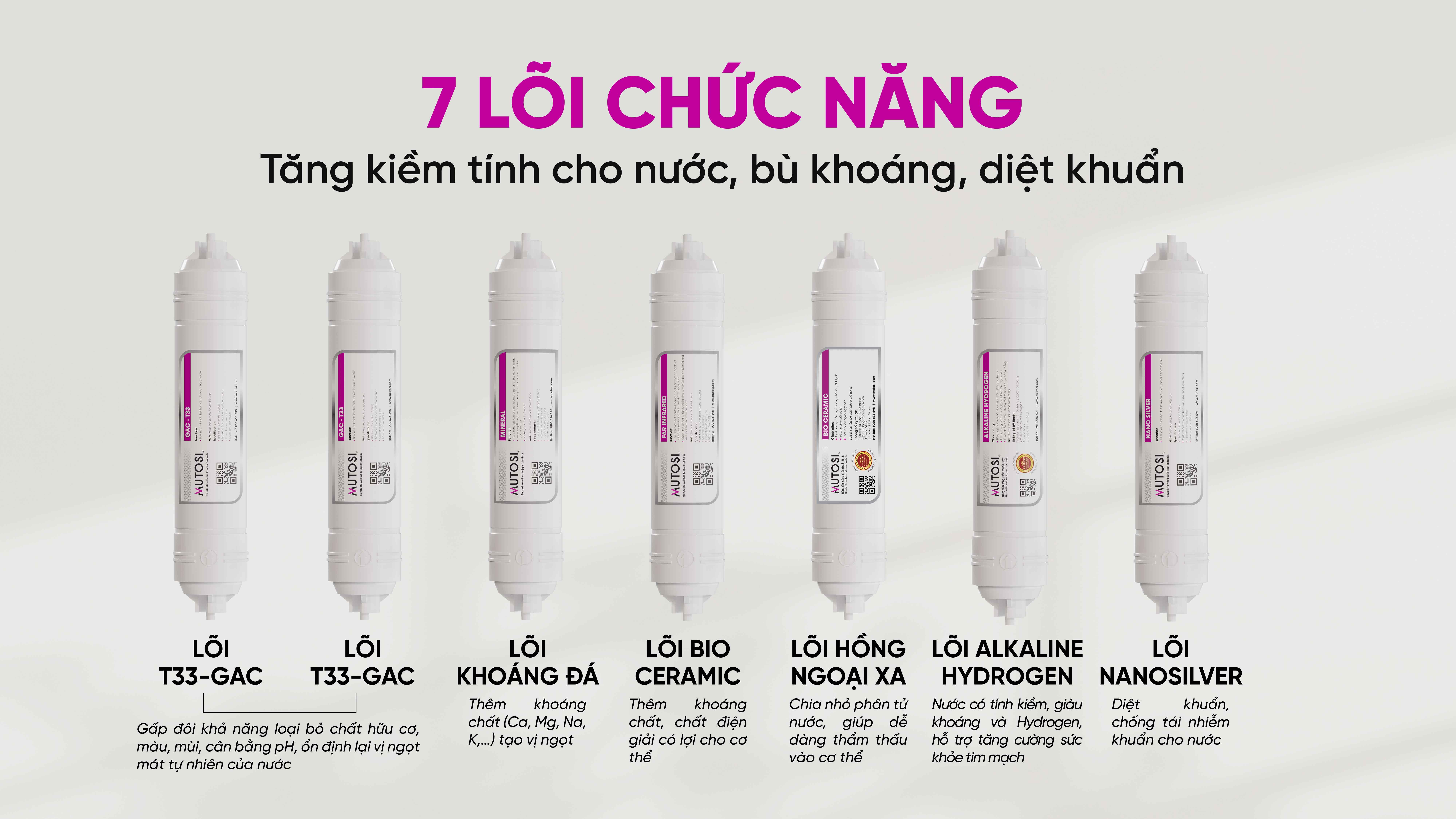 Với 7 lõi chức năng, máy lọc nước MP-S99 cung cấp các khoáng chất cần thiết cho cơ thể và diệt khuẩn một cách hiệu quả: