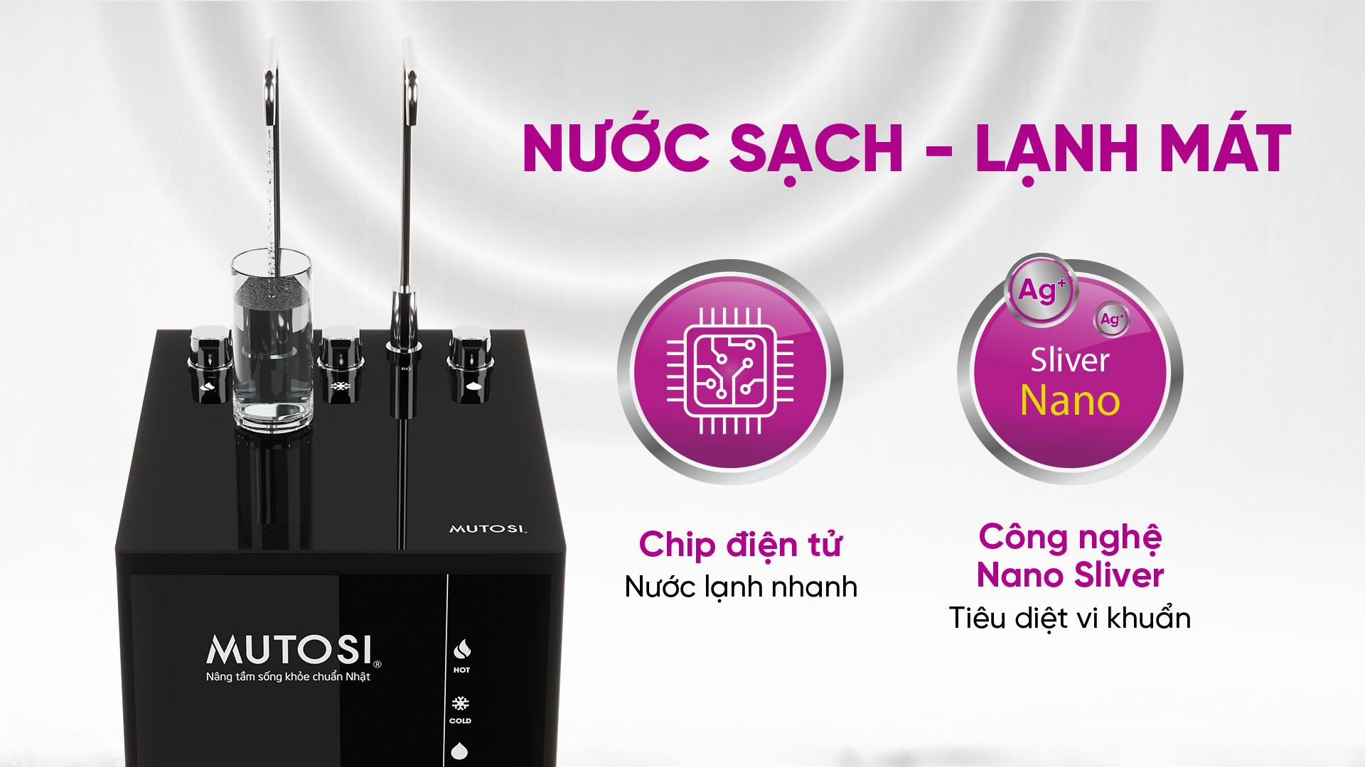 - Công nghệ kháng khuẩn Nano Silver giúp tiêu diệt các loại vi khuẩn gây hại có trong nước, chống tái nhiễm khuẩn trong quá trình nước lưu thông trong hệ thống lọc